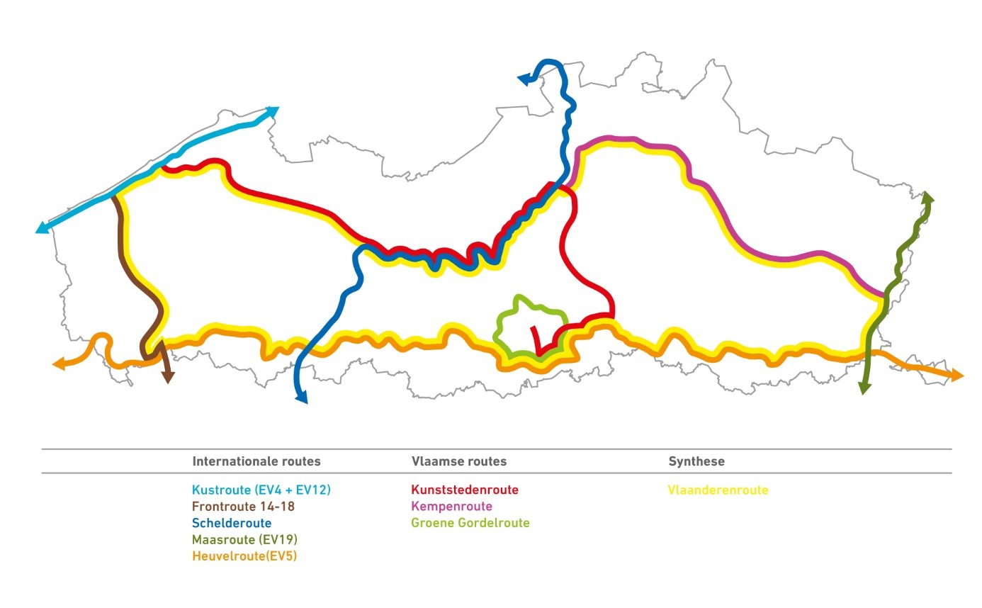Toerisme Vlaanderen, Westtoer, Toerisme Oost-Vlaanderen, Toerisme Provincie Antwerpen, Toerisme Vlaams-Brabant en Toerisme Limburg rollen tussen oktober 2020 en juli 2021 acht nieuwe langeafstandsfietsroutes uit.