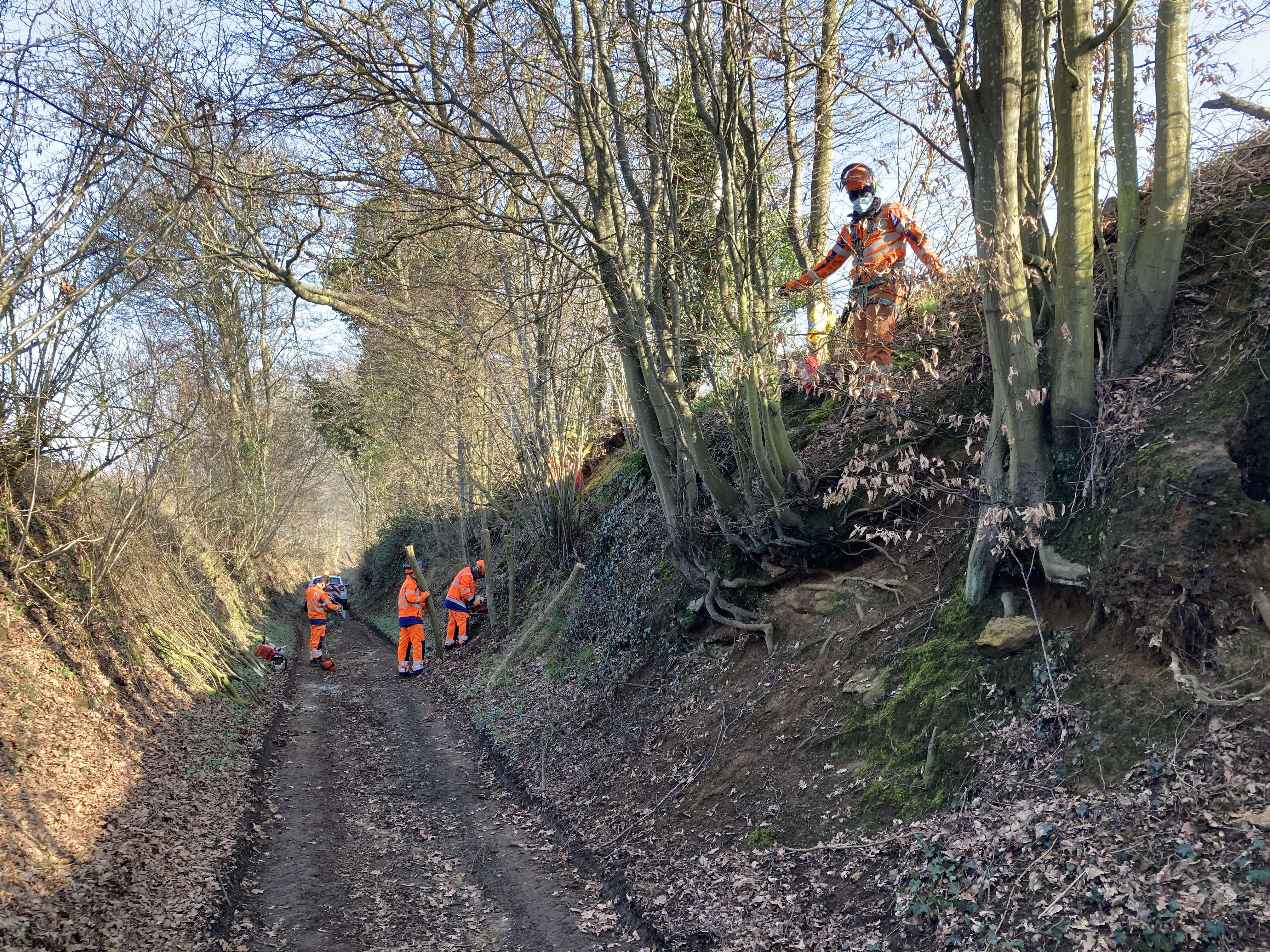 Op 8 maart was een INL-ploeg van IGO aan het werk in een holle weg tussen de Oude Tiensebaan en de Grotendries in Tielt-Winge. Struiken en bomen werden gekapt tot 10 centimeter boven het maaiveld. Hierdoor ontstaan hakhoutstoven die cruciaal zijn voor de stevigheid van de taluds van de holle weg. Ze moeten regelmatig terug worden afgezet om te voorkomen dat de bomen te zwaar worden. Bomen die te zwaar worden hebben immers een grotere kans op omvallen. Met hun val kunnen ze stukken uit de talud trekken waardoor de talud instabiel wordt en gevoelig voor erosie.